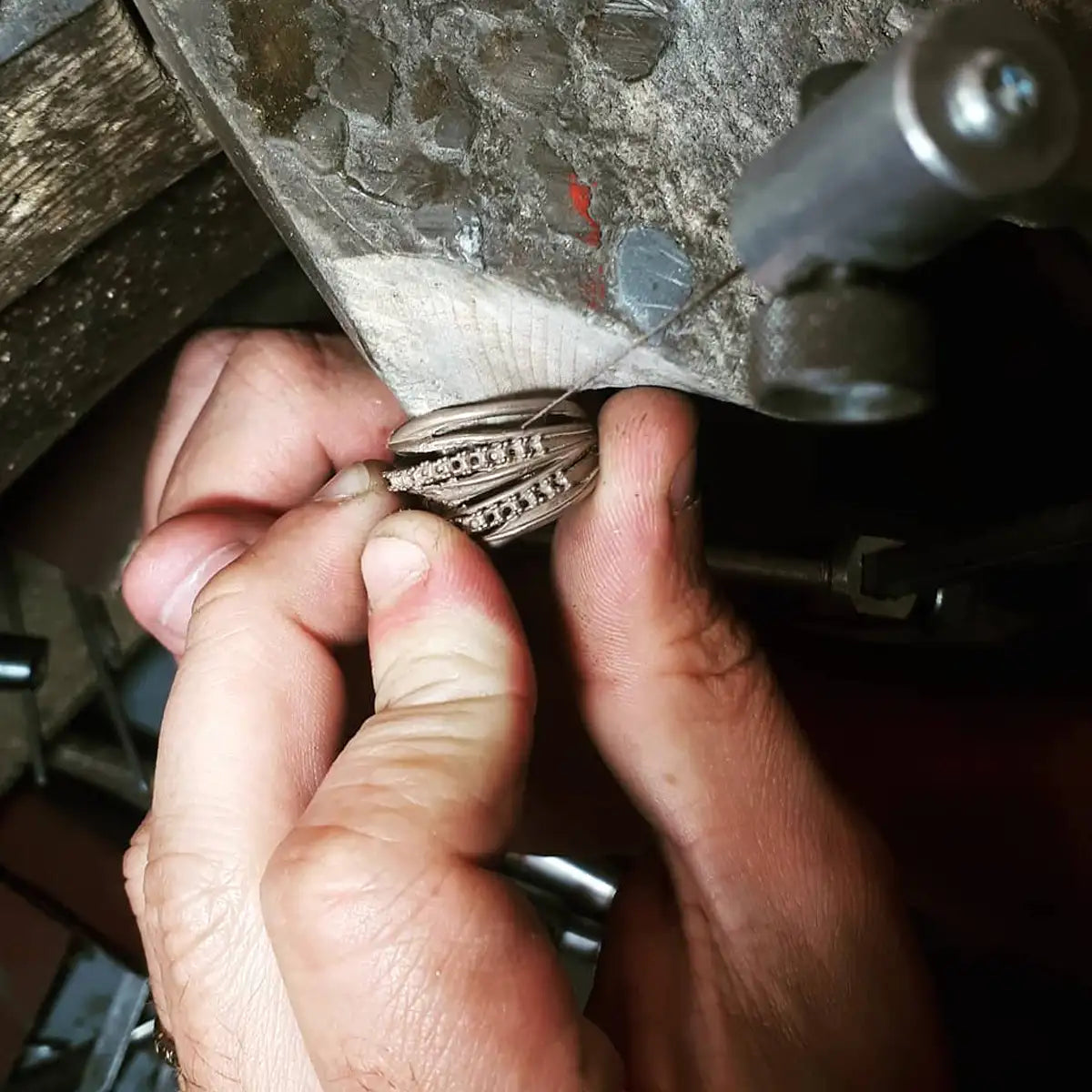 Ogni gioiello è realizzato a mano nel nostro laboratorio in centro a Bologna. Lavoriamo l'oro, l'argento e le pietre preziose pezzo per pezzo: nessuno è uguale a un altro. Cambia la pietra, cambia la forma, cambia la finitura. Quello che vedi in vetrina o nello shop esiste in un solo esemplare. Sono gioielli artigianali unici.